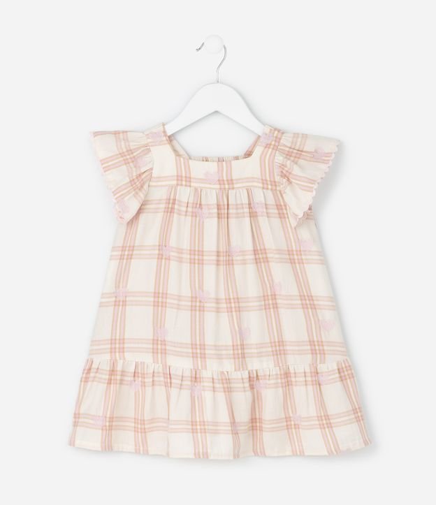 Vestido Infantil em Tricoline com Estampa Xadrez - Tam 1 a 6 Anos Bege