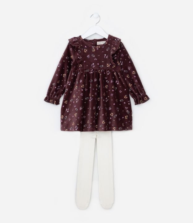 Vestido Infantil em Veludo com Estampa Floral - Tam 1 a 5 Anos