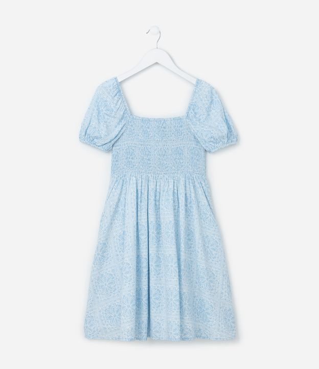 Vestido Infantil Texturizado com Laço nas Costas - Tam 5 a 14 Anos Azul