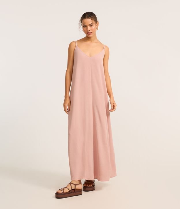 Vestido Long Midi em Crepe com Alcinhas Rosa
