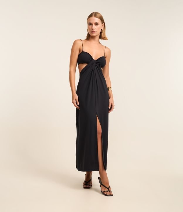 Vestido Long Midi em Helanca com Cut Out na Lateral