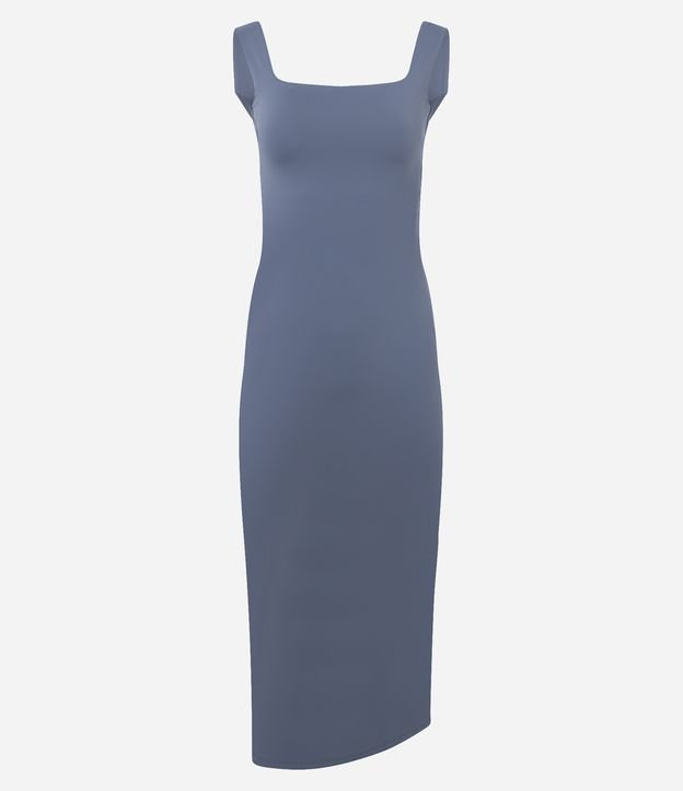 Vestido Long Midi em Poliamida com Decote nas Costas Azul