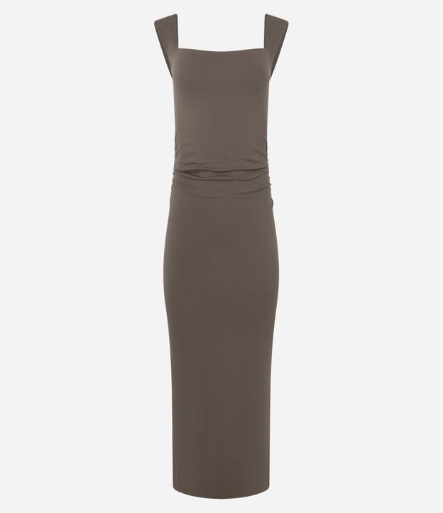 Vestido long midi, reto confeccionado em ponto roma com viscose mais sustentável. Possui alças largas, decote quadrado e fenda na parte de trás.