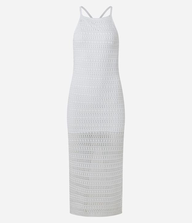 Vestido Long Midi em Tricô com Alças Cruzadas nas Costas Branco