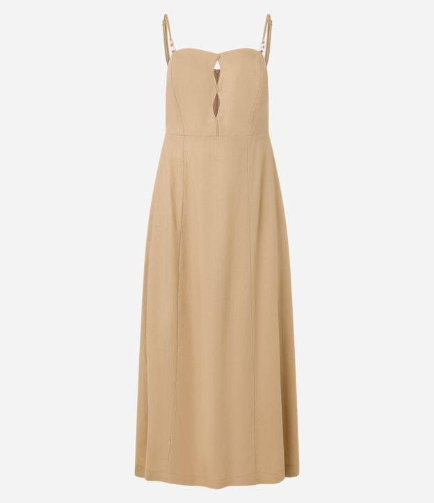 Vestido Long Midi em Viscolinho com Recorte no Decote Bege