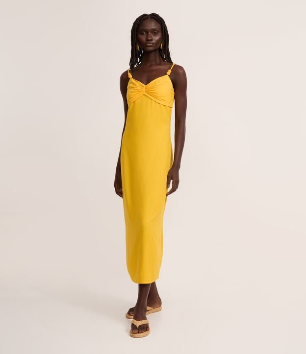 Vestido Long Midi em Viscolinho e Detalhes nas Alças Amarelo
