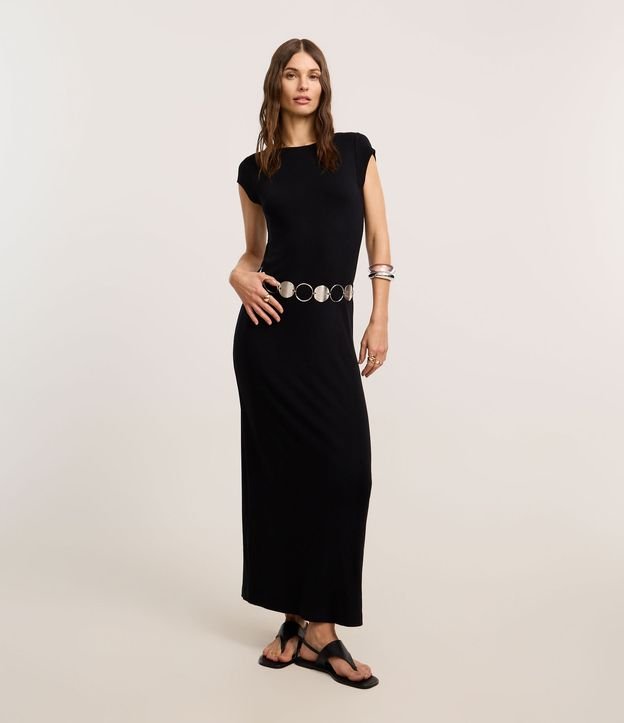 Vestido Longo Canelado em Ribana com Fenda Preto