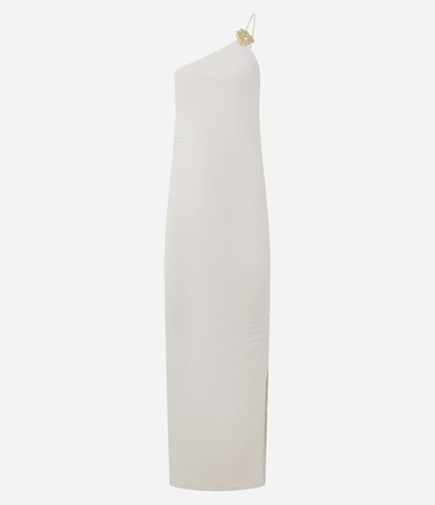Vestido Longo com Fenda Lateral e Alça Única Off White