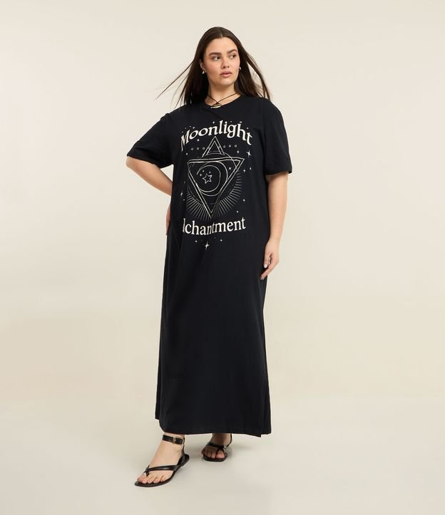 Vestido Longo em Algodão Estampa Moonlight Enchantment Curve & Plus Size Preto