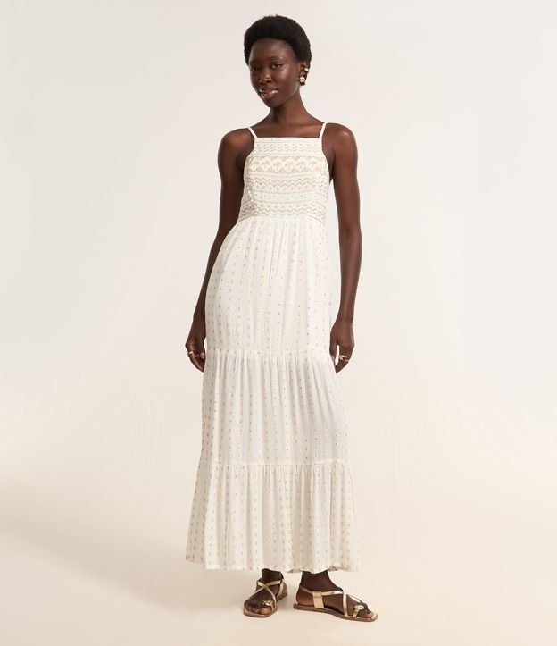 Vestido Longo em Crepe com Bordados Metalizados Branco