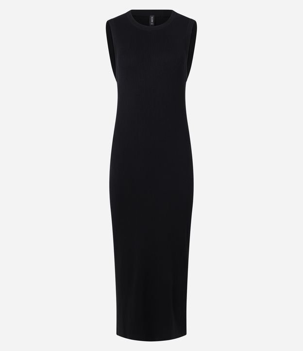 Vestido Longo em Tricô com Cintura Ajustada Preto
