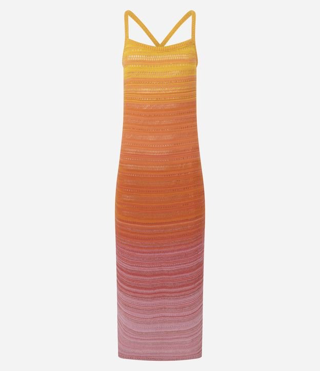 Vestido Longo em Tricô Degrade com Alças Cruzadas Laranja