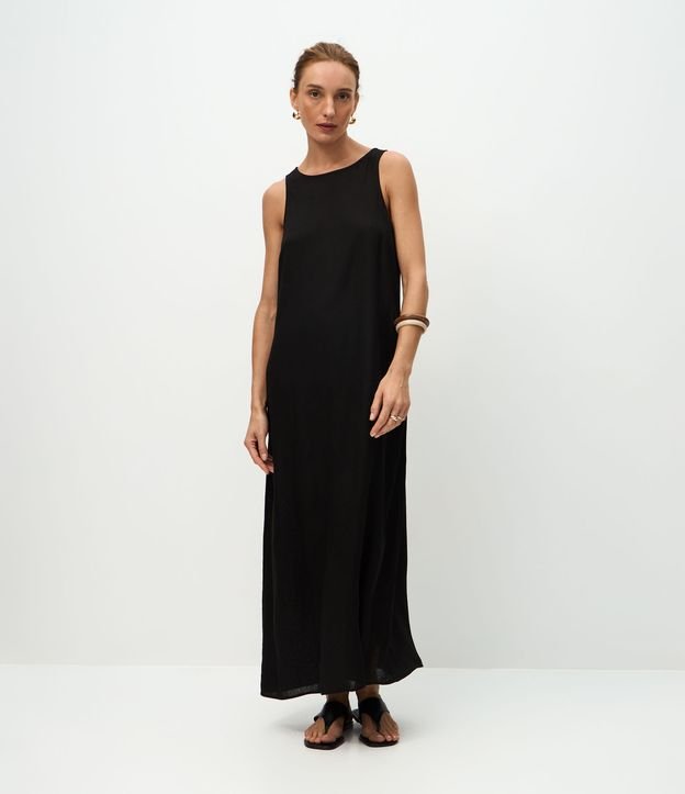 Vestido Longo em Viscolinho com Bolsos Preto