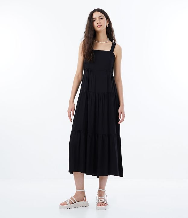 Vestido Longo em Viscose com Elástico na Alça e Babados