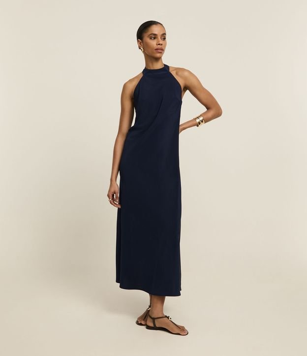 Vestido Longo Frente Única em Cetim com Amarração