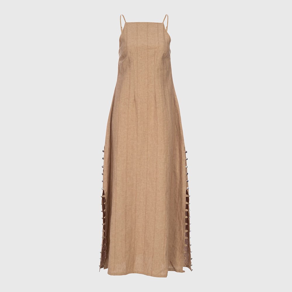 Vestido Longo Midi com Fenda -Nude