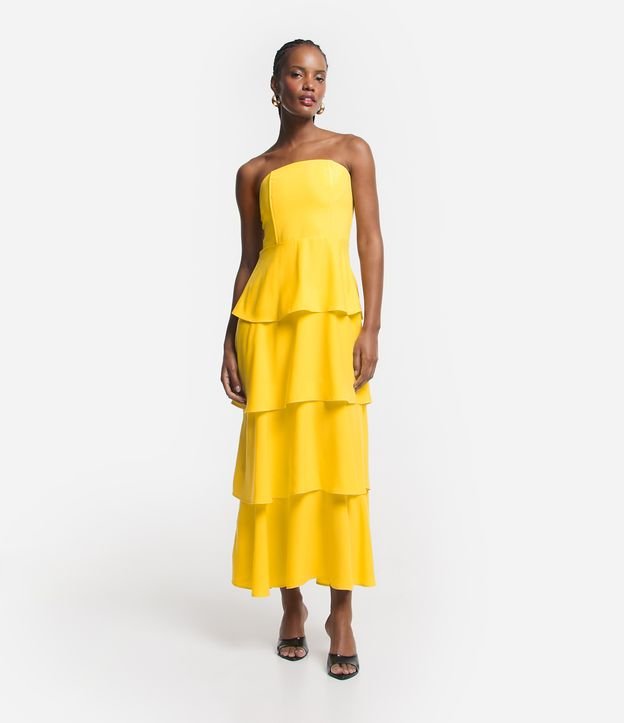 Vestido Longo Tomara Que Caia em Crepe com Sobreposições