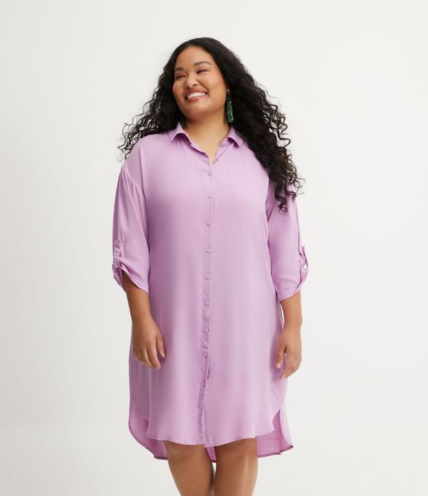 Vestido Manga 3/4 em Viscose com Abotoamento Curve & Plus Size