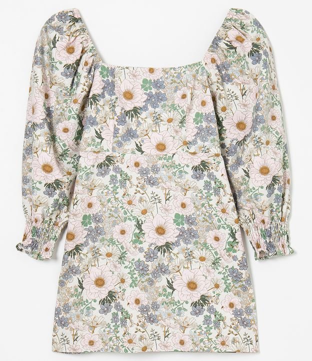 Vestido Manga Longa Bufante Estampa Floral Branco
