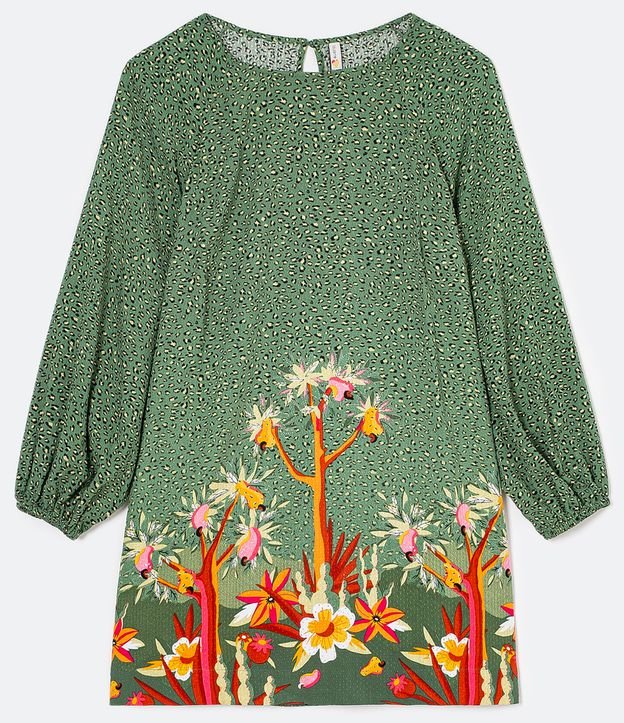 Vestido Manga Longa em Viscose com Estampa de Flores