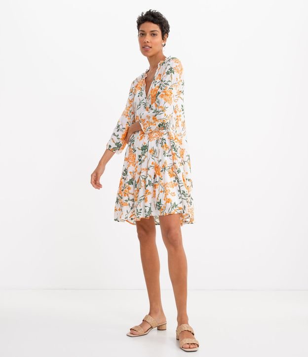Vestido Manga Longa Estampa Floral com Fechamento em Botões e Marias