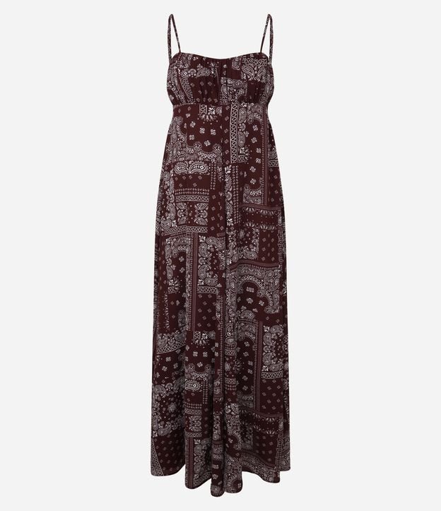 Vestido Midi com Alças Finas e Estampa Paisley Vinho