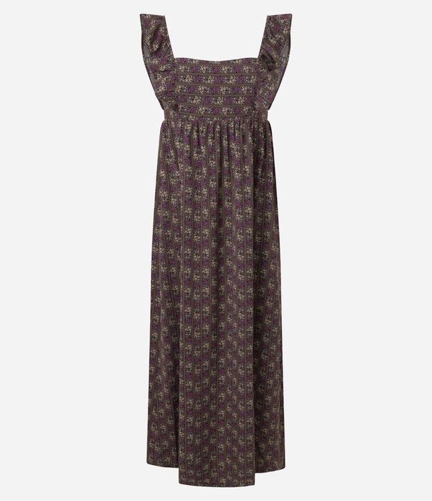 Vestido Midi em Airflow com Manga Larga e Estampa Floral Marrom