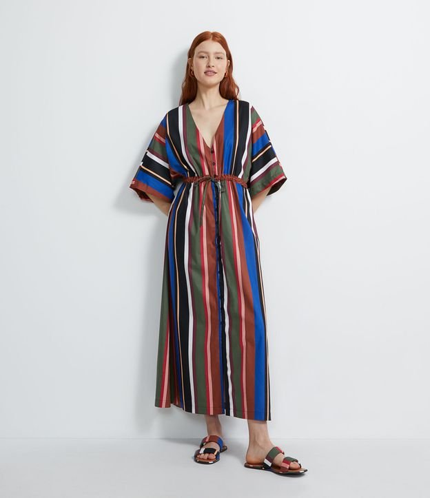 Vestido Midi em Algodão Listrado com Abotoamento Frontal