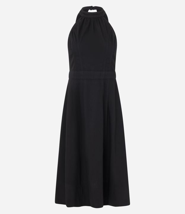 • Vestido Midi em Jeans com Frente única e Costas Abertas Preto 1
