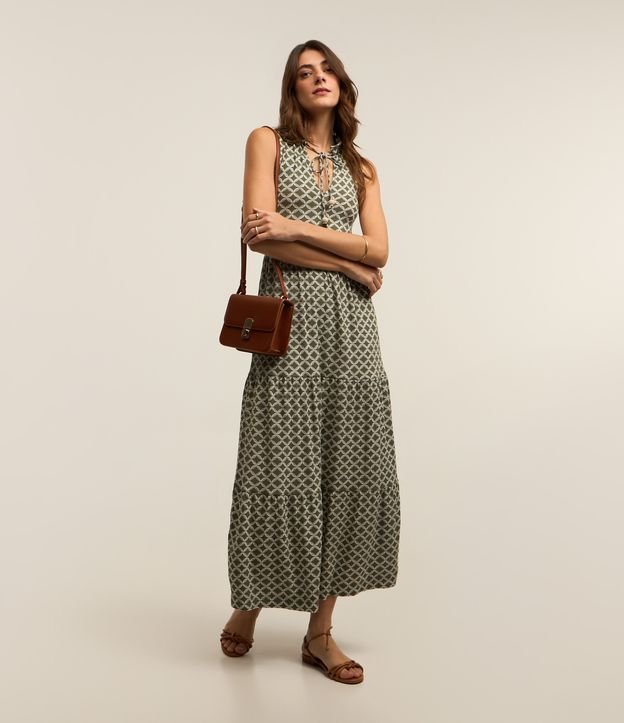 Vestido Midi em Malha Viscose com Recortes e Estampa Abstrata