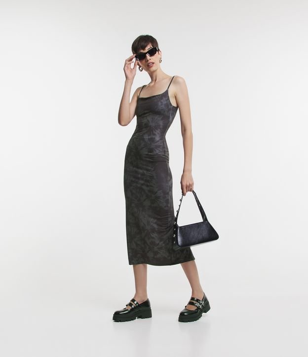 Vestido Midi em Microfibra com Modelagem Justa e Estampa Abstrata