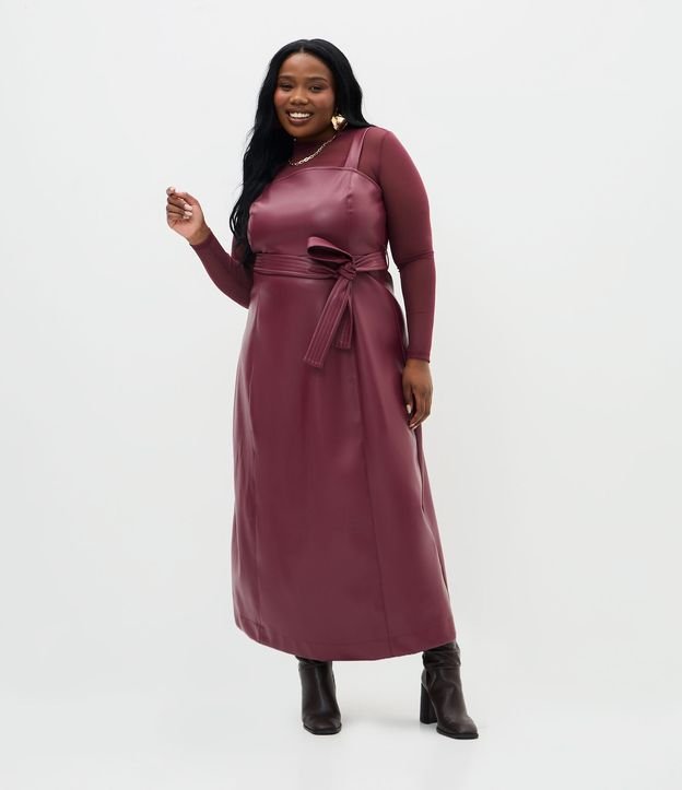 Vestido Midi em PU com Faixa na Cintura Curve & Plus Size