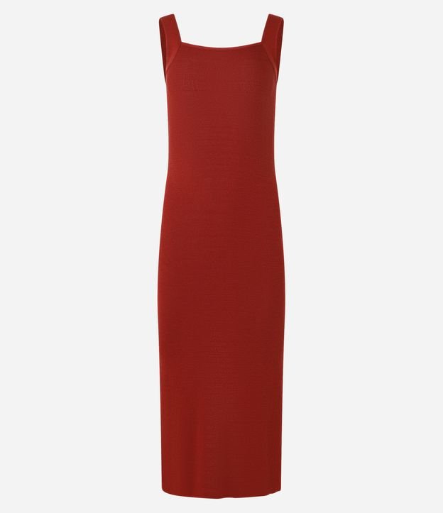 Vestido Midi em Tricô com Decote Quadrado e Fenda Vermelho