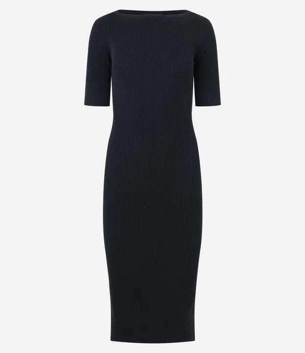 Vestido Midi em Tricô com Manga Curta Preto