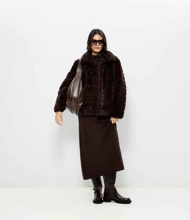 Vestido Midi em Tricô com Puxadinho Lateral Marrom