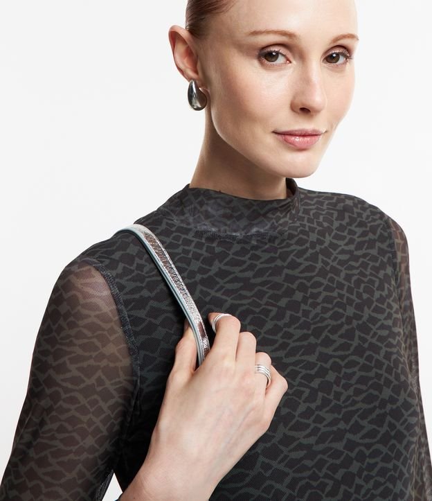 Vestido Midi em Tule Animal Print com Gola Alta e Mangas Longas