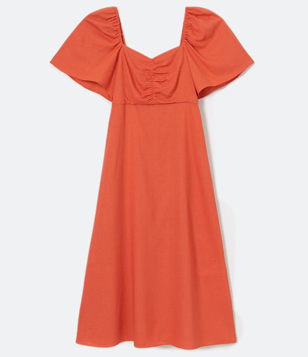 Vestido Midi em Viscolinho com Franzido no Busto e Manga Ampla
