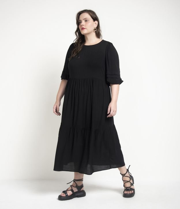 Vestido Midi em Viscose com Babados Curve & Plus Size