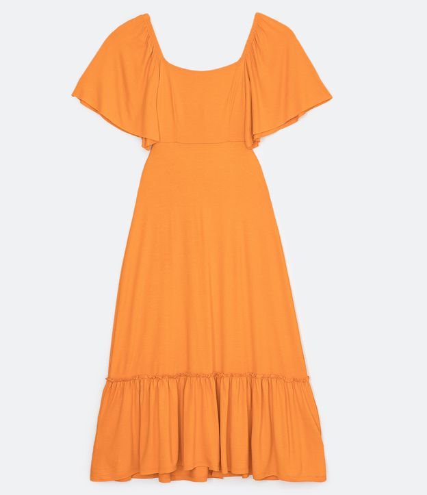 Vestido Midi em Viscose com Manga Curta Ampla e Babado na Barra