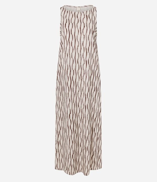 Vestido Midi Evasê com Alças Largas em Viscolinho Bege