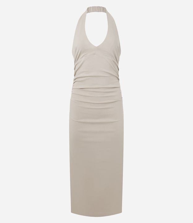 Vestido midi em bengaline com frente única e decote V, valorizando a silhueta com elegância. Possui design sem mangas e caimento estruturado, ideal para ocasiões especiais ou produções sofisticadas no dia a dia.