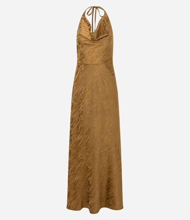 Vestido Midi Frente Única em Cetim com Decote Degagê Dourado