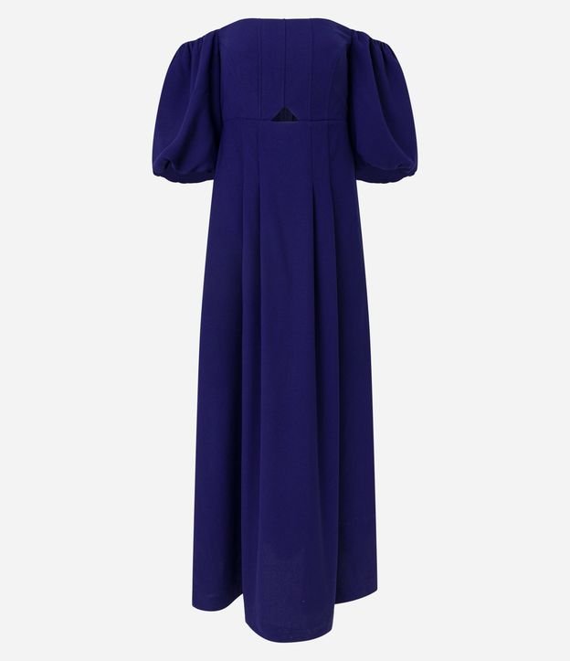 Vestido Midi Ombro a Ombro em Crepe com Manga Bufant Azul