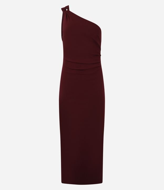 Vestido Midi Ombro Único em Bengaline Vinho