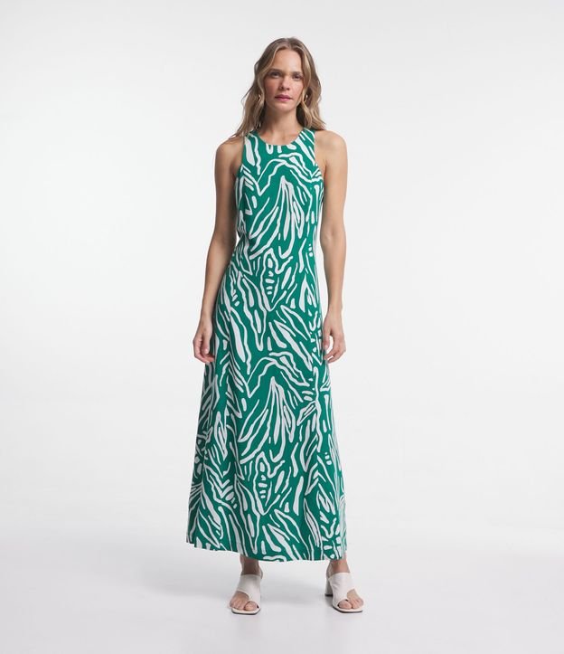 Vestido Midi Sem Manga em Viscolinho com Estampa Abstrata