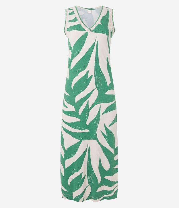 Vestido Midi Sem Manga em Viscose com Folhagens Estampadas