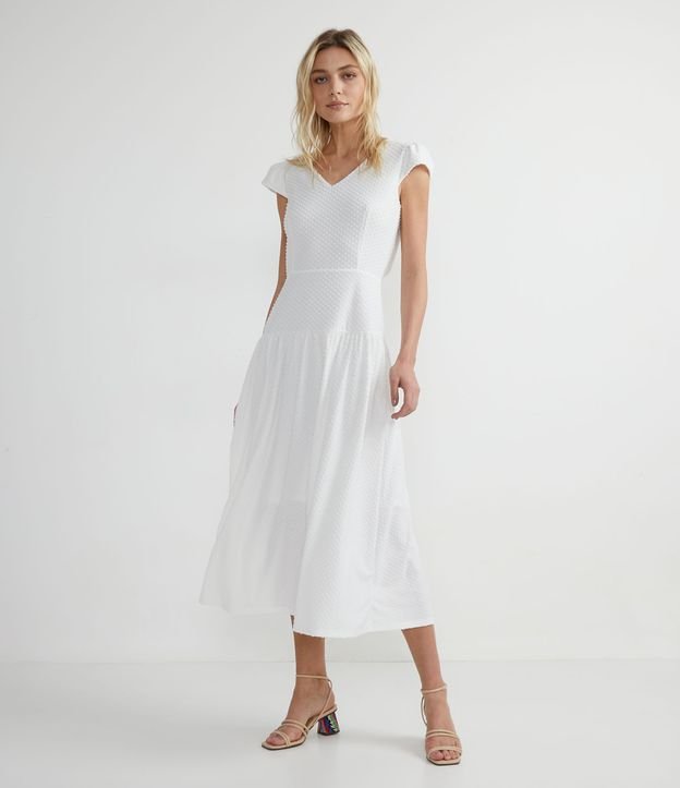 Vestido Midi Texturizado com Amarração nas Costas