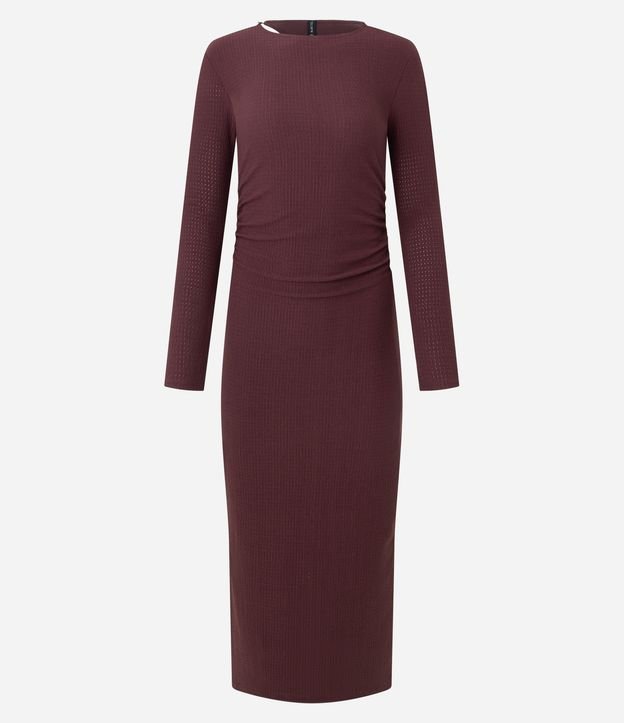 Vestido midi texturizado, com gola redonda e mangas longa. Possui caimento ajustado ao corpo de detalhe vazado nas costas, que adiciona modernidade a peça. Ideal para produções elegantes e atuais, com conforto e versatilidade para diferentes ocasiões.