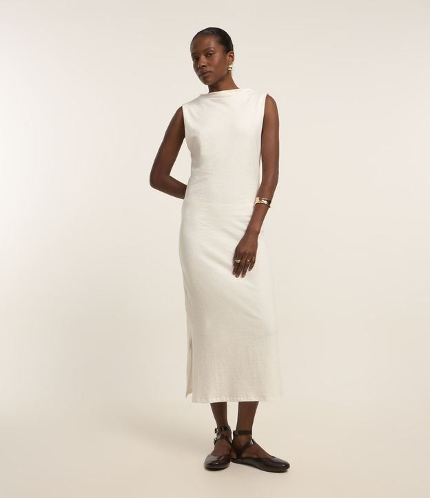 Vestido Midi Texturizado em Algodão com Fenda