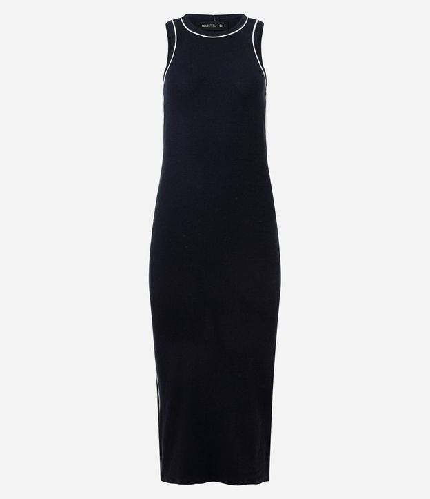 Vestido New Midi Canelado em Ribana com Contrastes Azul Escuro